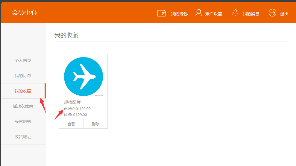 ①.以pc营销版为例,选择产品详情,在样式设置中开启收藏功能,可以看到图片下方增加了收藏按钮。